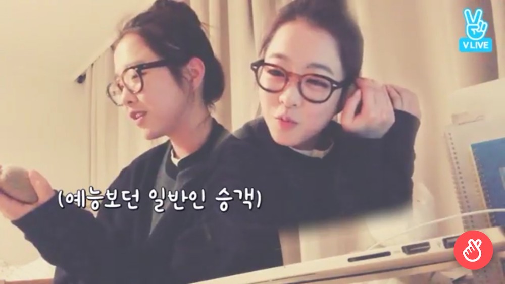 坐下後,她說人們偶爾會左右看一看,所以就發現了坐在旁邊的姐姐,正在收看朴寶英出演的綜藝節目《兩天一夜》於是心想:「哦!是我!」