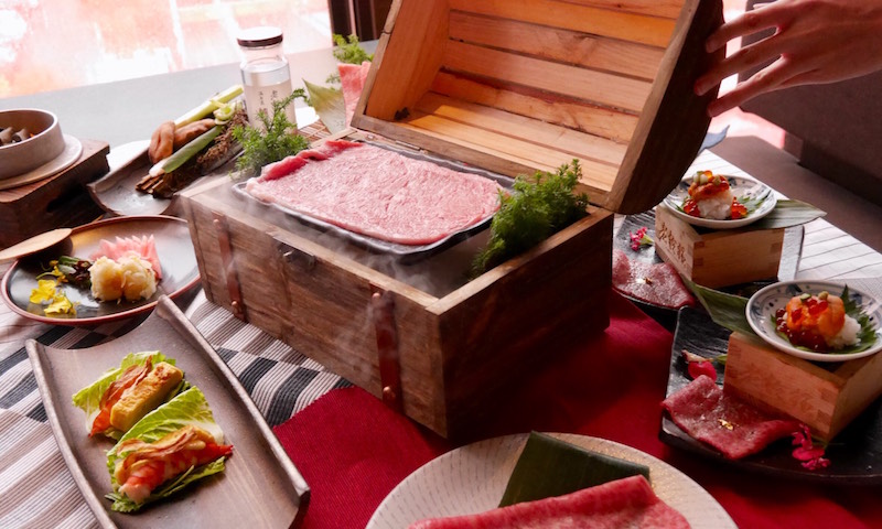 在8月17日到8月19日短短三天,推出七夕限定「極選和牛套餐」,還可加價由專業人員幫你全程定烤服務,還特別以乾冰製造出煙霧繚繞的效果,超浮誇的「日本和牛寶盒」令人大開眼界。