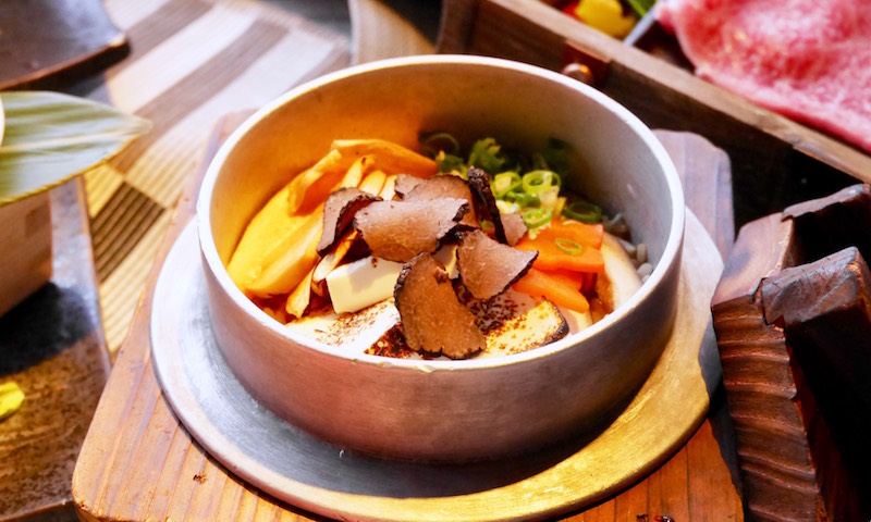 另外七夕更推出限定新品「黑松露和牛釜飯」,高雅香氣與米香、和牛甜味完美結合,再啜飲一口滿壽泉純米吟釀更是絕配。