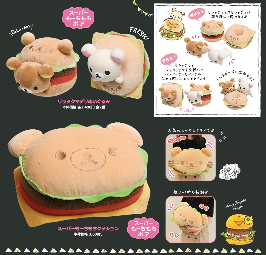 最後同場加映8月新品,拉拉熊和小白熊分別變成了漢堡跟貝果,還被夾在裡面,也太萌了吧❤︎❤︎❤︎各位拉拉熊粉們荷包都準備好了嗎?