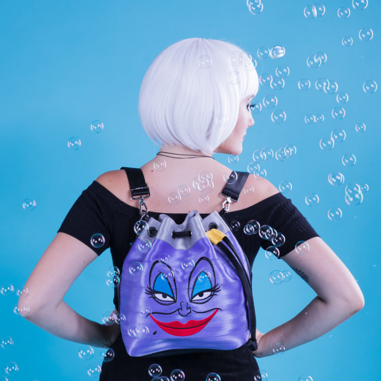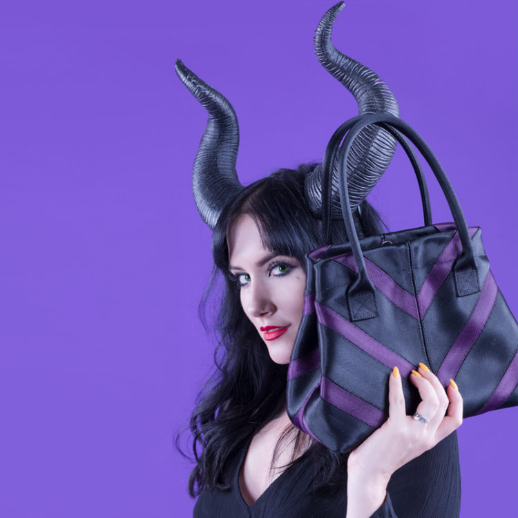 紫黑色搭配成的手提包代表的是黑魔女梅菲瑟,用色低調但又不失她的神祕感。