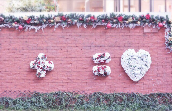 重點來了!這個會讓少女們尖叫的超可愛拍照區,其實就只是「一面牆」罷了。但千萬別小看它,因為上頭特別用花花草草佈置成了有+號、 =號,以及❤的意境牆,讓妳不管是跟家人、朋友,甚至是戀人來拍都好有FU〜