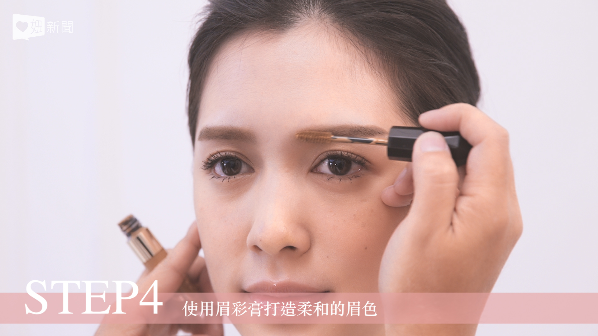 很多人畫完上面這個步驟,就認為眉毛OK了,嗶嗶!黃牌一張!這樣只完成了一半!因為立體的眉毛本身還是黑色的,所以一定要再用眉彩膏染色,創造出自然的眉束感,也讓整體眉型更完整。