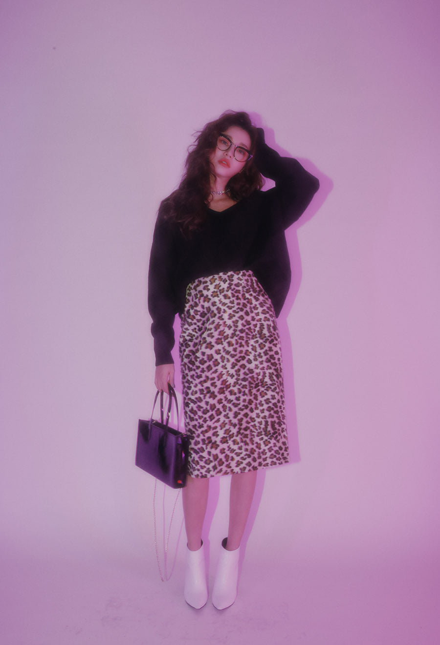 下半身比上身更不容易穿搭,一個搭不好會有點走偏,所以無論是褲裝或裙裝,除了豹紋之外的穿搭單品質感要好、顏色要單一、以黑白為主,例如:豹紋短裙可以搭配黑色過膝靴和黑色高領,不只微性感又很時髦。