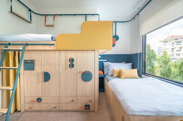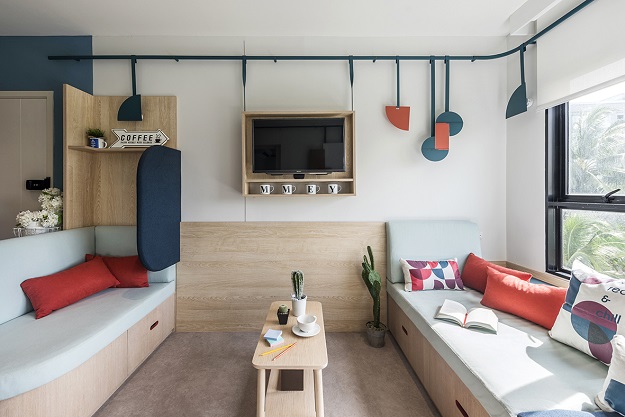 泰國房地產開發商AP有限公司,委託義大利傳播研究公司Fabrica,在曼谷打造充滿活力的宿舍環境,極富設計感的空間規劃,從分區、用色、動線規劃到極具機能性的活動設計,滿足社交與隱私的需要。