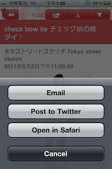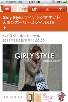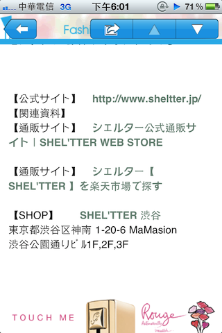 點選進入,所有的搭配元素都有以英文介紹,還可以將內容以E-mail分享給其他人,或是貼到Twitter上,如果覺得在這裡看不習慣的話,還可以連結到網頁的環境中來閱讀。