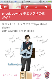 Fashion-J一共分了五個主題,第一個是Sketch「速寫」,本單元也是Hsuan最喜歡的一部分,這裡是以手繪的風格帶出每日東京街頭的穿搭情形,並是以英文來做介紹,跳脫一般傳統的街拍型式,讓你也可以輕鬆從中學習最新流行的穿搭技巧。