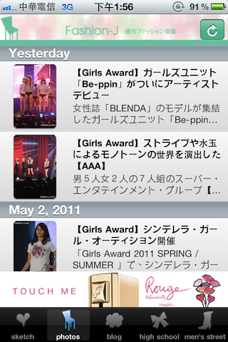 第二個主題則是以photo「相片」為主,主要是一些與時尚相關的話題,還有許多TGC(Tokyo Girls Collection)走秀活動,帶你看日本少女流行的服飾的走秀,在日本是要買票才可以觀看的,但現在你可以透過Fashion-J來一探究竟!