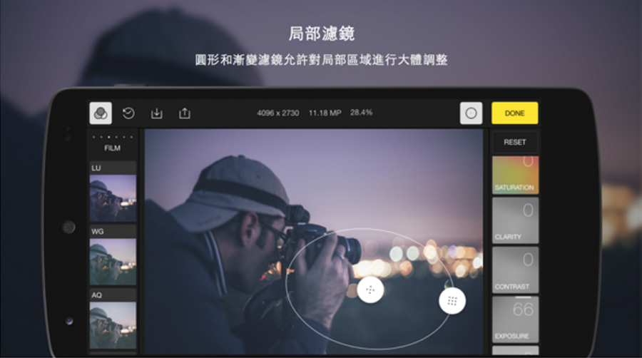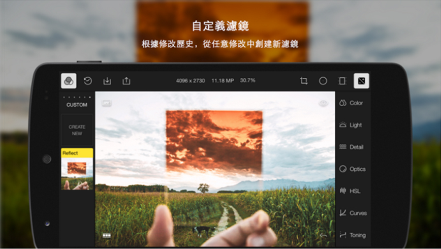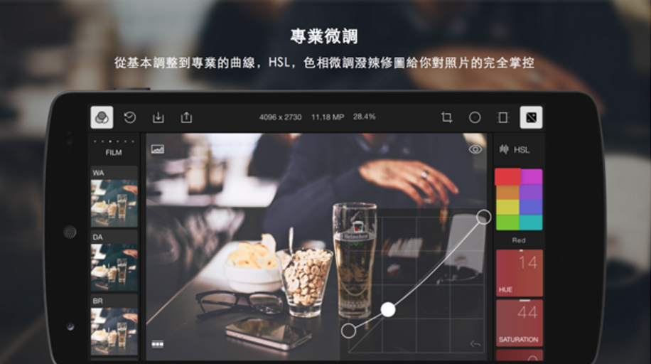 《潑辣修圖》跟一般的濾鏡App比起來,多了一點「專業感」,功能宛如Photoshop般專業。利用曲線功能將照片的色相微調,讓照片多了更多豐富的色調。女孩愛用的局部濾鏡當然也不能少。除此之外,還可以任意更改濾鏡效果,創造出極具個人風格的濾鏡,更重要的是,它還可以無限返回上一步,對於完美主義者來說,簡直就是一大福音呢。