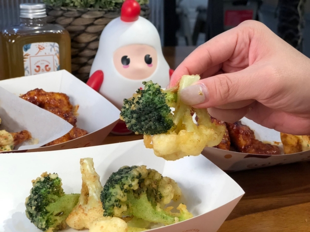 除了開運半半炸雞之外,同場加碼帶來雙色系當季時蔬新品「青白花菜」選用國產雲嘉地區花椰菜和青花菜,佐以繼光香香雞獨家的密製裹粉,現點現炸,薄脆外皮之餘,又保留了時蔬本身的水份,清爽不油膩,點份炸物再來份蔬菜最適合了!