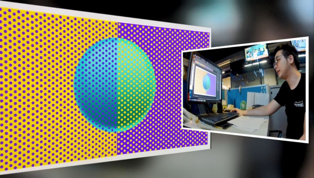 這位教授大衛諾維克(David Novick)表示,這張圖的左邊是以黃色為底,球體上佈滿紫色小點,而右邊則是紫色底,上面有黃色小點,所以乍看之下會覺得左側的球為藍色、右側的球為綠色,不過實際都是一樣薄荷綠的圓球,在加上底色跟小點之後,便會感覺到顏色的變化,一邊加上紫色圓點,一邊是黃色圓點,立刻變成藍、綠兩色,再加上背景色就更為明顯了。