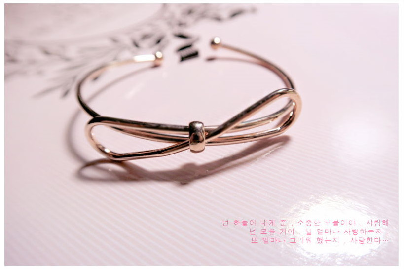 玫瑰金的顏色很顯白,另外也有銀色款,銀色則感覺比較個性一點。蝴蝶結的圖案簡單卻很耐看,是很百搭的手環款式。