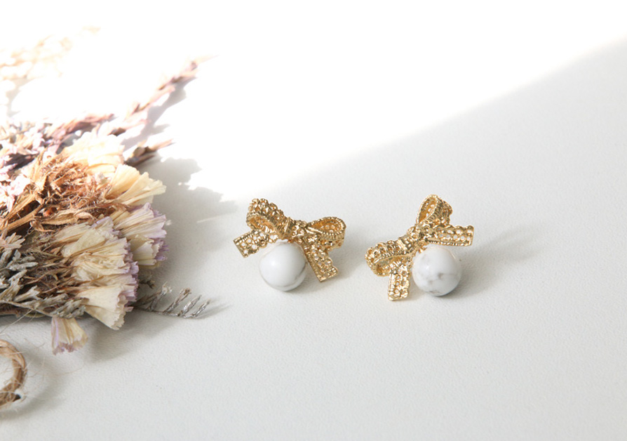 接下來這款也是很百搭的耳環款式,小小的蝴蝶結配色大理石紋路的球球,有種微少女的風格。