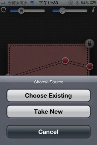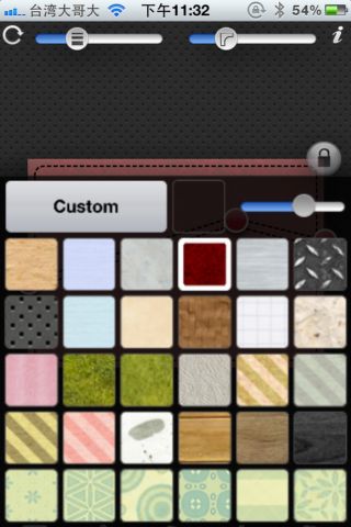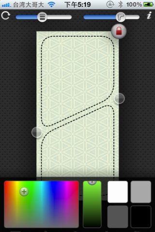 接著,下方工具列由左數來第三項以及第四項,都是讓我們可以改變照片底色的項目。Color是讓你指定單一顏色;Pattern則是可以套用既定的面板。Pattern設定的右上角還可以讓你選擇背景的濃度,自主性很高。