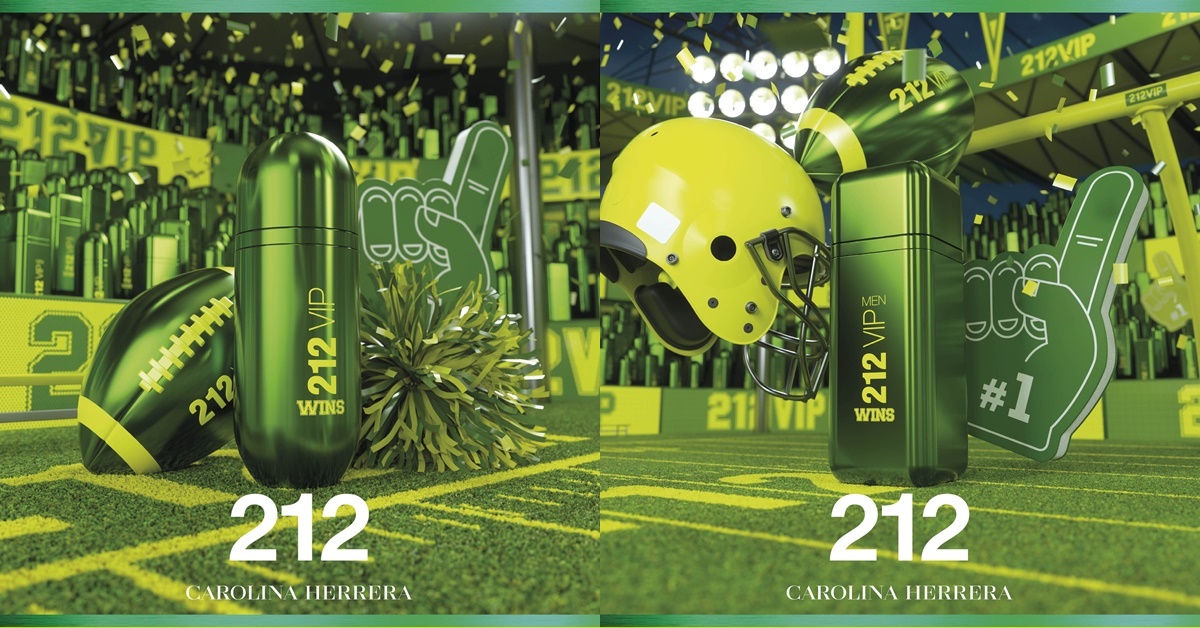 全新的 212 VIP 綠色奇蹟男女淡香精重新詮釋了經典的 212 VIP 男香(2011 推出)和女香(2010 推出)的 瓶身設計,綠色金屬的瓶身結合了美式足球的力與 Carolina Herrera 的美,精心調配的青草綠宛如美式足球的比賽場,一個充滿著運動家精神和衝勁的殿堂。