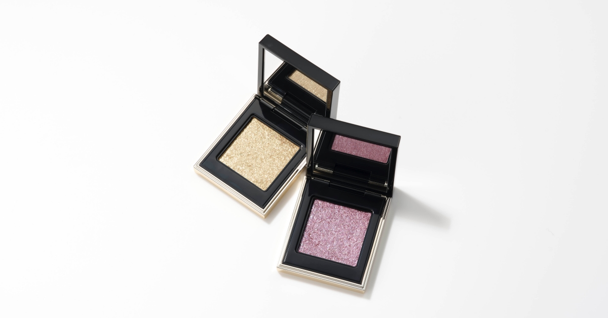 粉色、藍色和綠色的極細珠光粒子,閃耀立體、多面形的光燦感,雙眸上彷彿灑落彩紅色的露珠般閃爍細膩的亮澤。2款色彩的靈感來自月光與晨光。細膩的質感與水潤的色澤為特色的單色眼影,極細的珠光粒子如露珠般光滑灑落於肌膚上,限定2色全新登場。