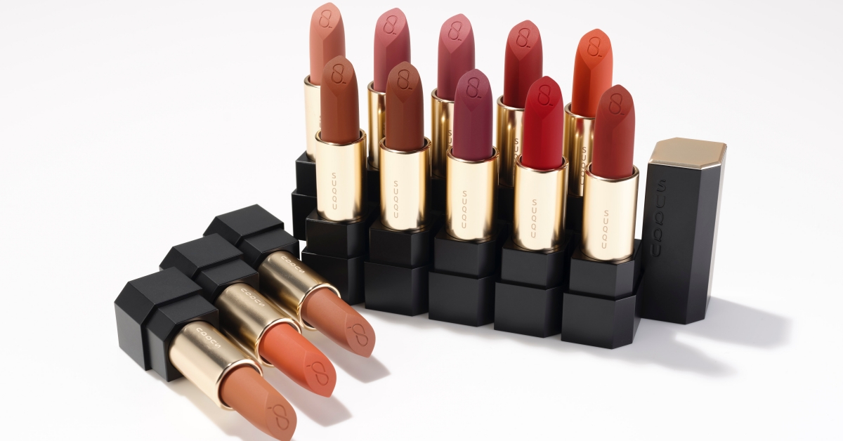 SUQQU獨家子彈頭x字母刻印口紅造型:將SUQQU的3個字母「S」「U」「Q」結合為一的全新標誌,刻印在口紅的頂部表面,賦予凜然柔韌的女性形象以及永恆之美。唇膏造型展現挺立端雅的氛圍,讓人感受彩繪雙唇的喜悅。