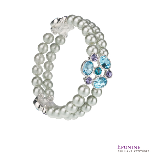 除了項鍊搭墜外,Eponine更注重每個女孩時尚細節,以三層繁複圓潤珍珠與施華洛世奇元素璀璨水晶時尚搭配,設計凸顯出女孩手腕潔白纖細的手環,閃爍出如同海面璀璨折射的湛藍光芒,散發溫暖而絢爛的浪漫氛圍,讓時尚品味從細節堅持中呈現。