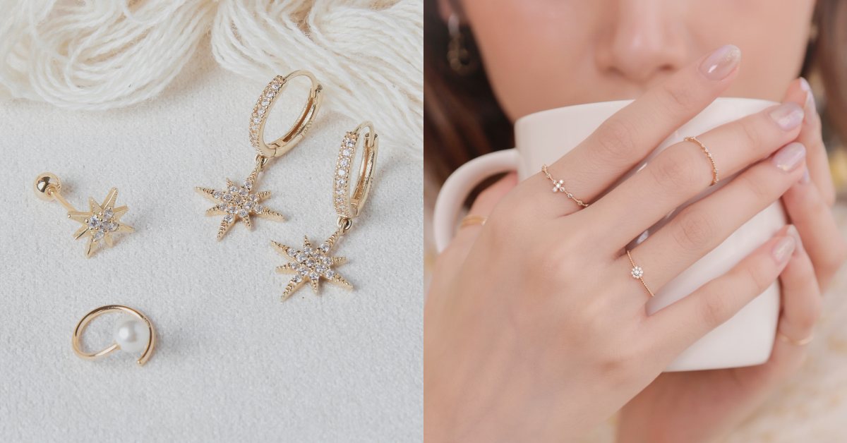 Silver Twinkle10K金 星芒耳擰 NT$1,880、Silver Twinkle 14K玫瑰金迷你珍珠S型層次耳環 NT.1,680