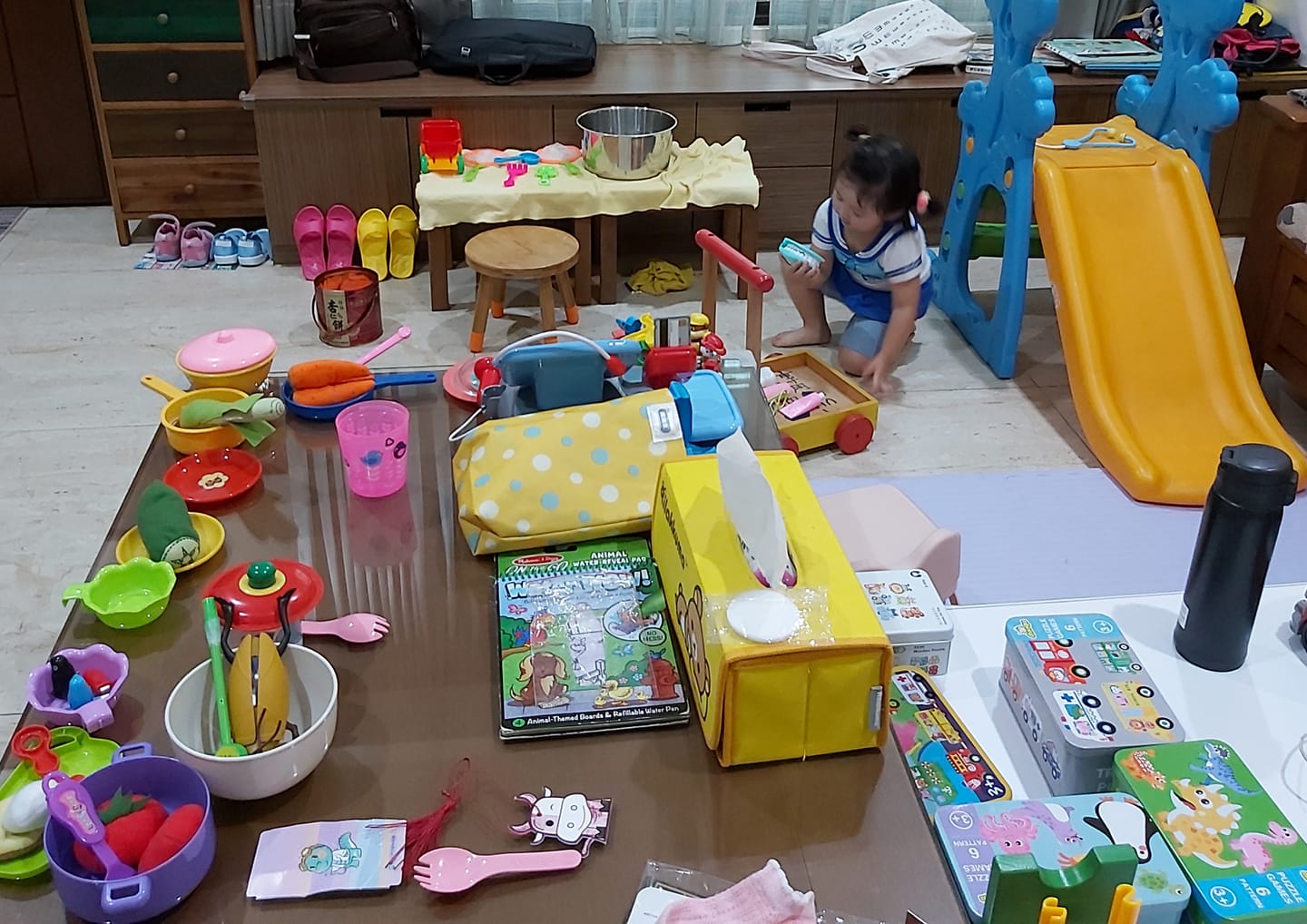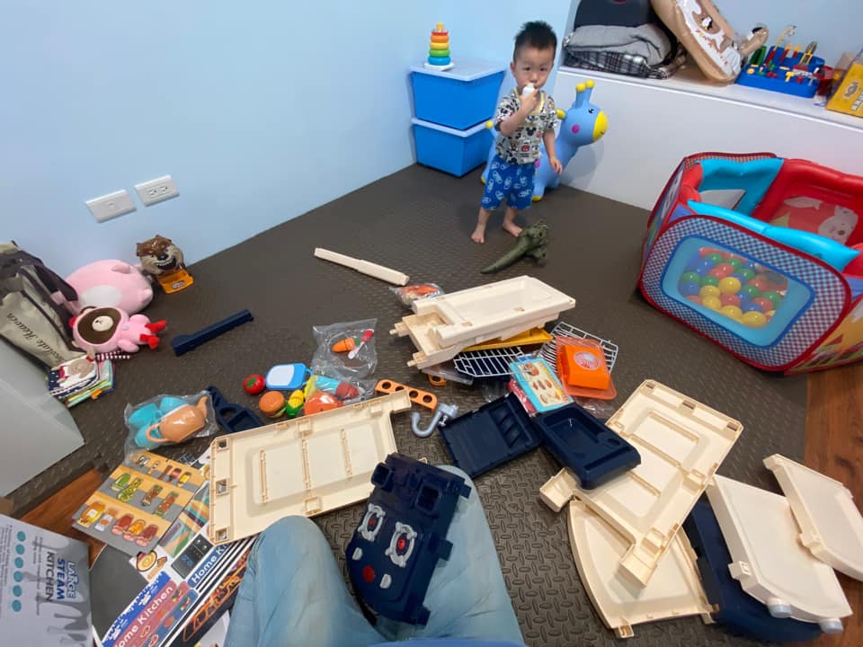 哎~誰不想要有個乾淨、整潔的生活環境呢?但老實說,要天天整理、每天重複整理真的會很累啊!不只體力,連心都會很累,所以媽媽們也不必太糾結,規劃出一個「髒亂遊戲區」,只要小孩在遊戲區內玩,就算遊戲區內被弄得像被炸過也沒關係。在這段期間學會睜一隻眼、閉一隻眼,就會輕鬆很多!