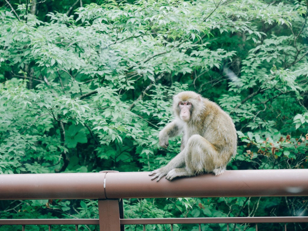 隔天早上離開溫泉旅館沒多久,在路上發現野生的日本猴!