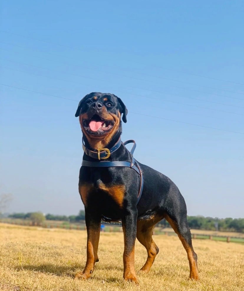 洛威拿犬(Rottweiler)又被稱作羅威納犬,是一種起源於德國的大型犬,由獵捕野豬的大獒犬+牧羊犬混種而成為如今我們所看到的洛威拿,在歷史上洛威拿犬曾作為牧羊犬、警備犬、第一二次世界大戰的軍犬等多種用途幫助人類。洛威拿較易辨認的外觀就是強而有力的下顎,以及頭部顯老的(?)皺紋,當牠感覺警惕時也非常容易皺眉,被戲稱為「老起來放」的狗狗!