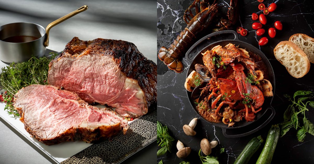 擁有義籍主廚領軍的GMT義大利餐廳,推出熱銷商品「爐烤美國肋眼牛排」,選用美國蛇河谷的極黑和牛肋眼,以月桂葉、百里香等時蔬香料炒香再以紅酒提香,經燉煮後續以小火爐烤約三小時,外皮微帶焦香,鮮甜肉汁完封其中。不食牛肉者,可選擇「盤克夏豬里肌」,主廚選用油脂豐厚如雪花般的美國盤克夏黑豬,以迷迭香、黑胡椒及橄欖油等醃漬,再以63度低溫舒肥約兩個半小時後爐烤至表面略帶焦香,品嚐時搭配松露醬或特製肉汁醬。喜食海鮮者,帶有濃厚義大利家鄉風味的「托斯卡尼燉龍蝦海鮮」,則選用鮮美的龍蝦,搭配現流章魚、牛奶貝及紐西蘭淡菜等多款海鮮一起燉煮,海味濃鮮馥郁。此外,還有適合團圓分享的「海鮮披薩」,純手工擀製的麥香麵皮,綜合多種海鮮及蔬食,以窯烤方式原味呈現。異國風味年菜,每款1,500元起。