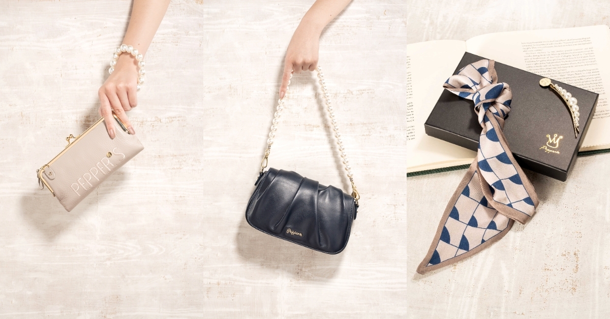 珍珠鍊所散發的典雅氣質,可說是「行走的時尚場域」回頭率新星!PEPPER’S為Reese 珍珠短背帶和手挽鍊另賦予創意的變化,短背帶變身掛飾、手挽鍊變身手環,如同PEPPER’S一包多用原創設計,配飾當然不能一成不變,才能充份組搭出妳的美好時尚、看見妳的獨一無二風格!幾何線條串連出的無限祝福,讓PEPPER'S Fabulous! 絲巾禮盒成為典雅祝福三重奏一員!創造出絲巾百種風情,以珍珠夾做為穿針引線,將絲巾的柔美點綴出來;俐落大方的幾何圖形絲巾,優雅的與包結合,無論單邊、置中或是雙馬尾蝴蝶結綁法,讓妳的美好時尚,賞心悅目!