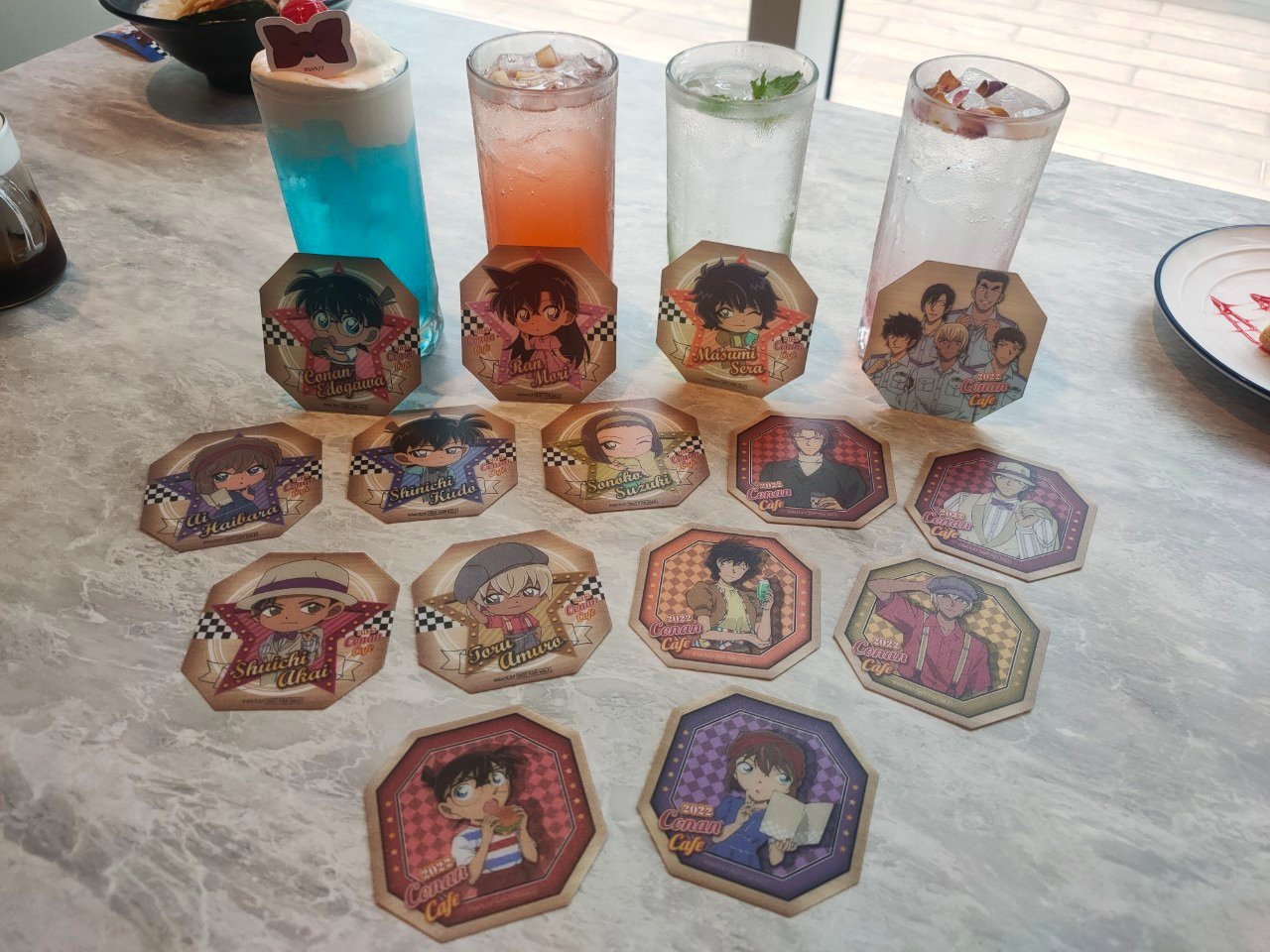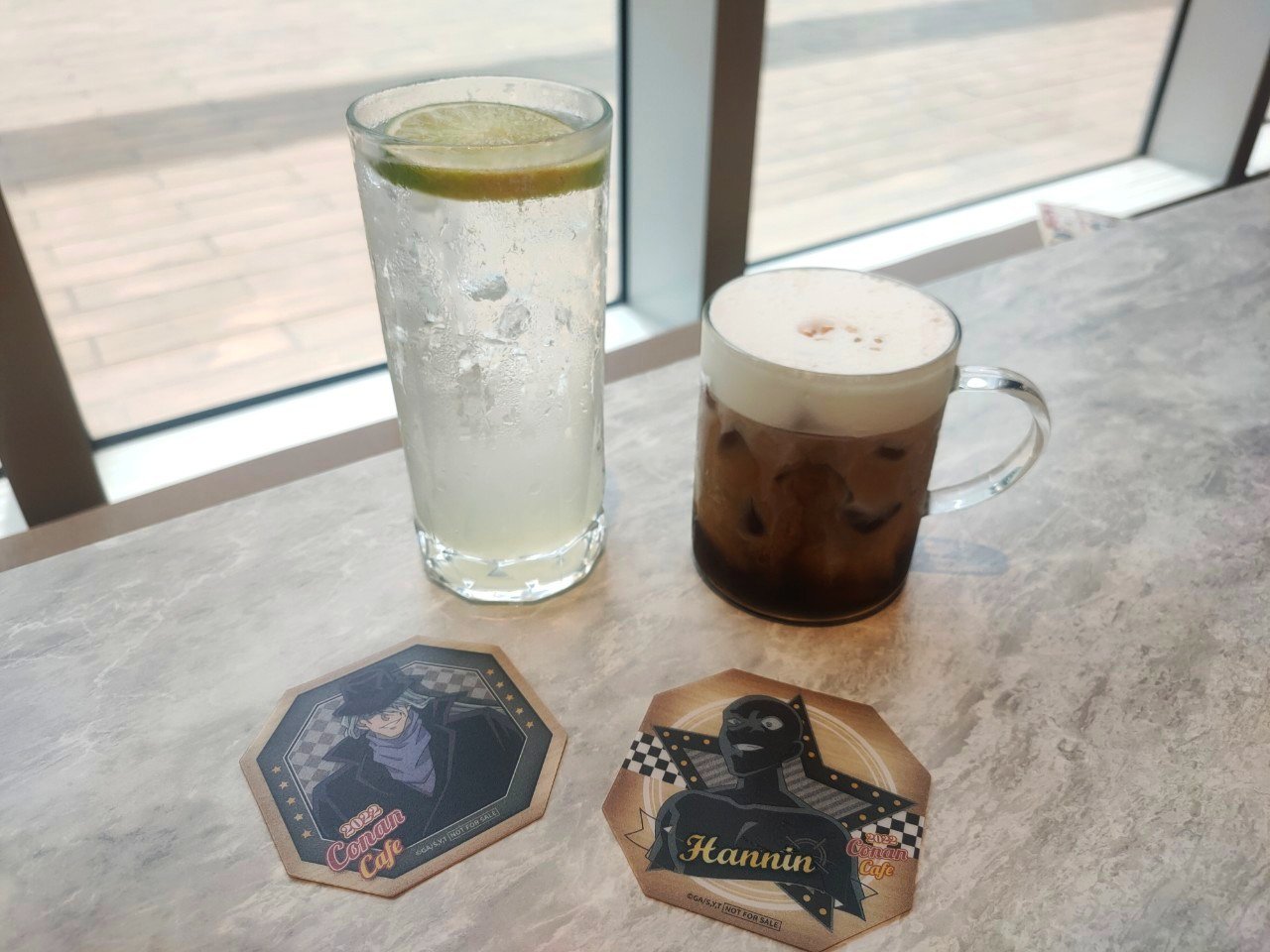 還有以角色意象為主所調製的10杯風味飲品,炎熱夏日裡喝一口立刻透心涼~另外,假日限定發售的GIN「琴酒檸檬費士」、犯人「杏仁特調拿鐵」更是鐵粉絕不能錯過的品項(難道有加氰化鉀XD)!飲品均附贈PP塑膠材質杯墊,而且不管是入內用或是外帶都可以獲得,疫情期間想買回家吃也沒問題。