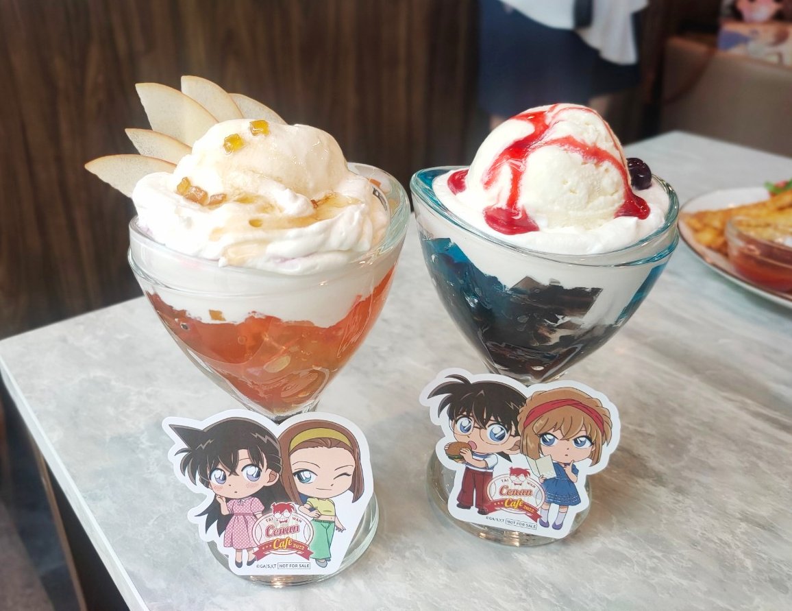 喜歡吃甜食的妞妞絕對不能錯過這一次的甜點、聖代與飲料,每一款都完美地呈現角色氛圍,今年的甜點特別以兩階段推出,7月30日至8月7日還能品嚐到七夕情人節必點的「七夕冰淇淋香蕉船」,還可獲得同時獲得高木&佐藤、新一&小蘭兩款婚禮寫真卡!