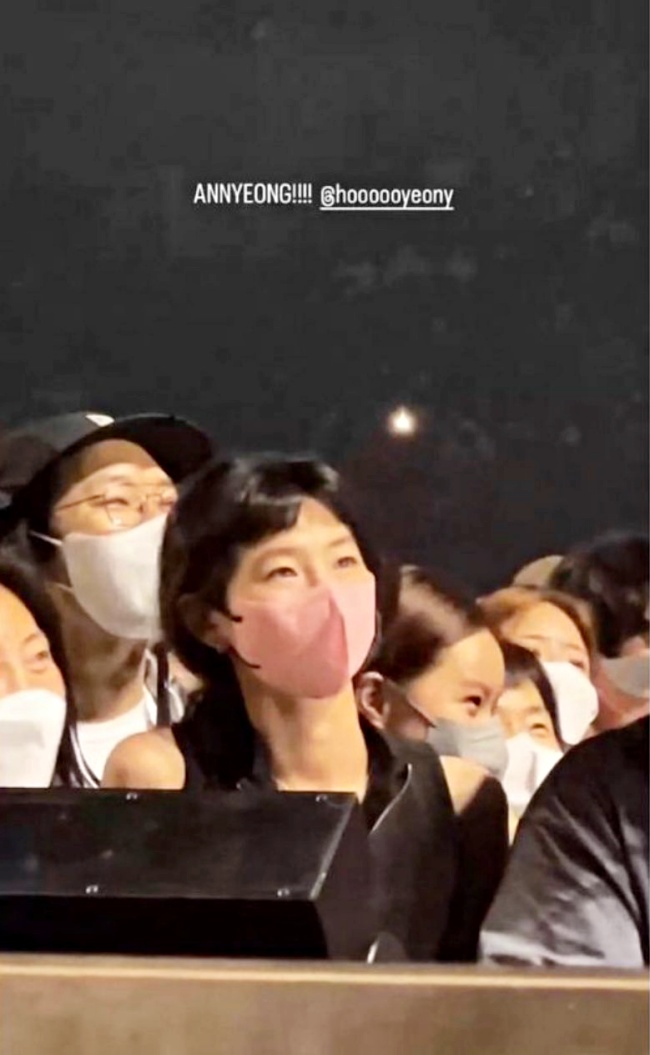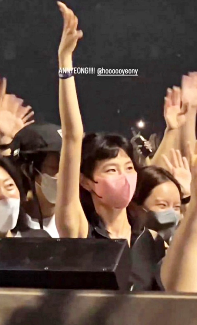 在昨日舉行的演唱會上,現場正因為怪奇比莉的精彩演唱沸騰時,搖滾區的這位現場觀眾異常的顯眼,雖然低調的穿著黑色無袖上衣,帶著粉色口罩、妝容清淡,但是藝人光環+176CM大長身依舊讓他被同場觀眾注意到,仔細一看…他居然是因為Netflix韓劇《魷魚遊戲》爆紅的「鄭好娟」