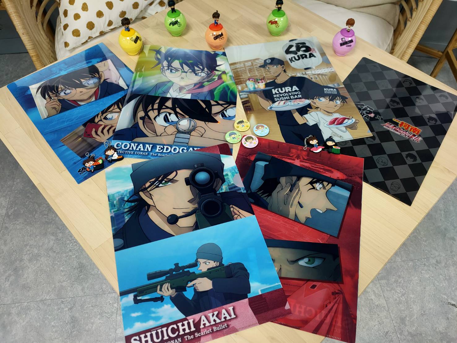 這次推出的13款限量扭蛋,包含5款「擁有角色限定扭蛋殼」的公仔,角色有:柯南、灰原哀、世良真純及特別獎「手握狙擊槍的危險男人赤井秀一」!另外還推出了4款立體磁鐵,呈現形式是各Q版主角的四周包圍著多款美味壽司,其中還加入赤井秀一的偽裝身分沖矢昂!