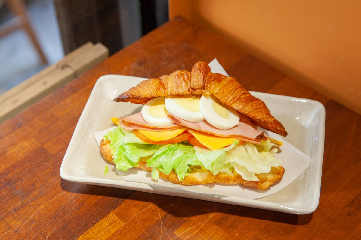 鹹食的部分,妞編輯推薦「里肌火腿可頌」,可頌烤得外酥內軟、夾餡豐富,一口咬下超級滿足,而且只要一個就很有飽足感,不管是當午餐、晚餐吃都可以,除了里肌火腿以外還有燻雞、鮪魚玉米、蛋沙拉等等口味可供選擇。