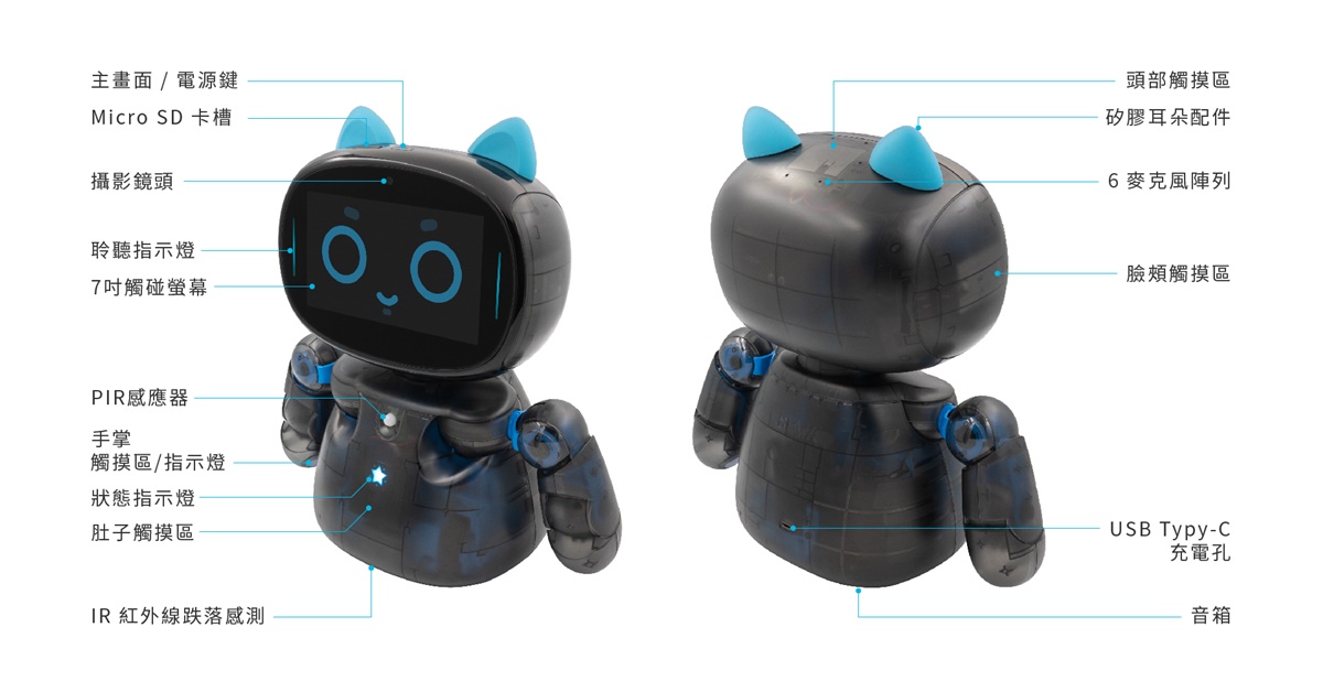 「Kebbi Air S-Robot Creator」精緻細膩的外觀設計,靜態時不僅能當一個高品質的收藏品,卓越的性能、優異的操控系統更將成為您日常生活中不可或缺的智能好夥伴。「Kebbi Air S-Robot Creator」能夠進行超過300個以上的物品辨識及建立高達50位的人臉辨識系統,全機身共配備6顆陣列麥克風,可以清楚收音聽到周圍的人說話,與玩家進行聊天、詢問天氣、知識百科問答等智能語音互動,也能連結手機 APP與家人、朋友進行遠端視訊通話。除了語音互動,「Kebbi Air S-Robot Creator」也預載超過30個各式功能及娛樂相關APP,想與您的專屬機器人進行互動遊戲,甚至是說故事、跳舞都不是問題。運用內建簡易上手的內容創作開發工具,只要一個晚上,就能輕鬆設計出細膩的動態臉部表情、活潑有趣的互動對話內容及豐富流暢肢體動作,讓玩家快速創作各式各樣的表演模式,且無需編寫程式背景,只要一把螺絲起子,即可體驗組裝智能機器人的樂趣,即使是零基礎使用者也能輕鬆入門。若您是進階者的玩家,也能運用網頁版程式實驗室內的MQTT傳輸協定,與Micro:bit、Arduino等開發版進行連動,將智能機器人融入您的AIoT創意場景中,讓應用更生動。還能透過MQTT設置與Siri及OK Google其他語音助理進行連動應用,創造出精彩的機器人互動操作。
