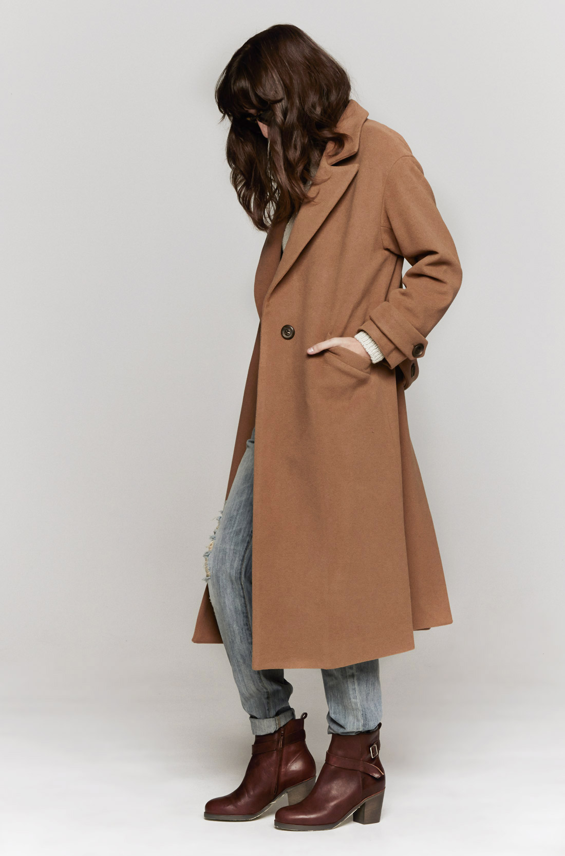 小撇步:把袖子往上折,露出一小截手腕,才不會像是偷穿媽媽大衣唷!