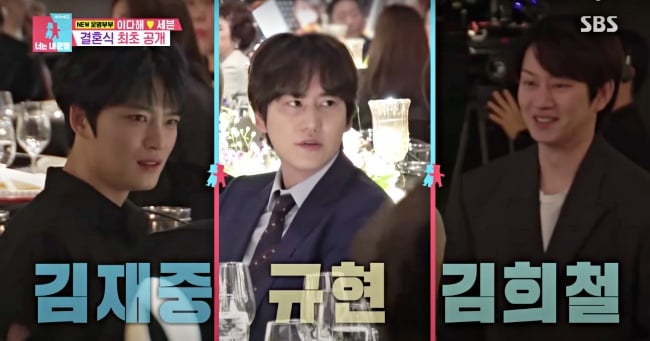 已經坐在位子上等著開席的Super Junior成員希澈、圭賢以及JYJ金在中也被捕捉,讓棚內嘉賓也忍不住形容「是頒獎典禮吧?」據悉當天到場賓客高達350人,超盛大的規模令人驚嘆不已~