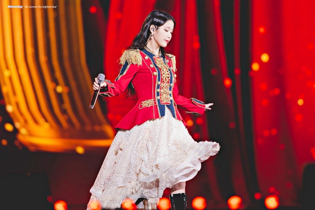 個人演唱會《The Golden Hour:在橙色太陽下》在9月底順利落幕的IU,連續2天的演出中,狂換多套華麗服裝,白紗洋裝、粉紅澎裙、亮片禮服…夢幻造型被韓網大讚是「真人迪士尼公主」。