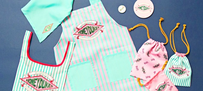 薄荷綠的外觀,加上那個芭比粉店名,霍格華茲師生都愛、聖誕節會大爆滿的人氣糖果店「蜂蜜公爵糖果店(HONEYDUKES)」周邊,雖然位於活米村,一年級新生也能擁有啦!聯名系列以招牌雙配色條紋作為主要花紋,在店名LOGO旁點綴滿滿糖果,妞編輯大推「聯名兒童圍裙」,還附上薄荷綠的三角頭巾,一套變身糖果店小小巫師老闆,親子烹飪課立刻+了魔法。