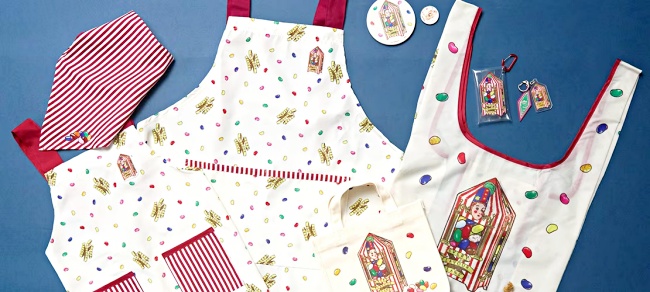 柏蒂全口味豆子圍裙...確定不會做出怪味料理(笑)?讓魔法界巫師們又愛又怕的人氣零食柏蒂全口味豆子,一整盒印上包包、杯墊、磁鐵以及兒童款圍裙上,在上面還能找到散落的神秘口味豆子多顆,讓你每打開聯名包都自帶驚喜感,一不小心就會摸到鼻屎口味的。