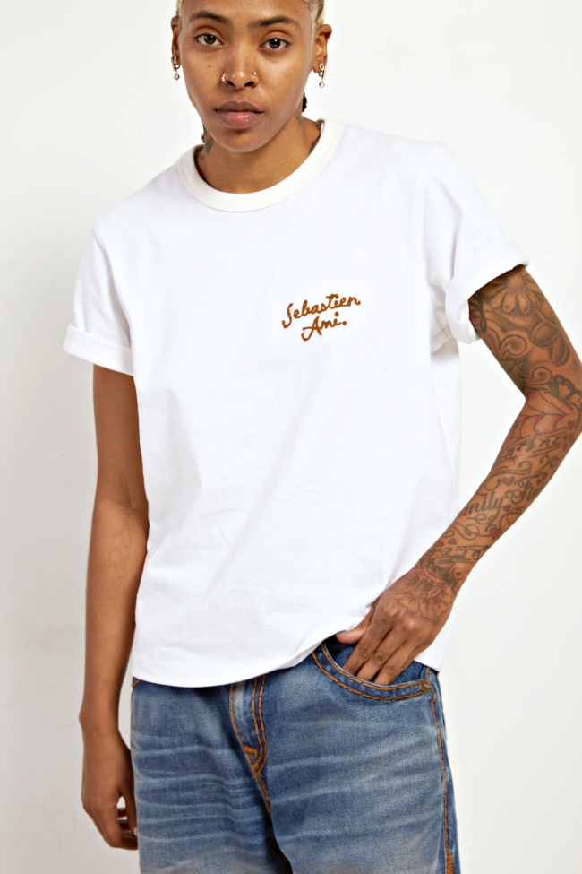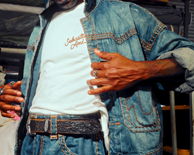 一件白T就帥暈全場是什麼感覺?乍看簡簡單單的百搭白TEE,其實是丹寧品牌True Religion與美國藝術家設計師Sebastien Amisial的限定聯名款,正面只在胸口處以刺繡點綴,一轉身立刻抓住眾人目光,穿著牛仔裝的帥哥(?)加上大大的品牌撞色LOGO超吸睛,「背影+背影」別具巧思,也可以花多一點預算投資一件丹寧褲喔~