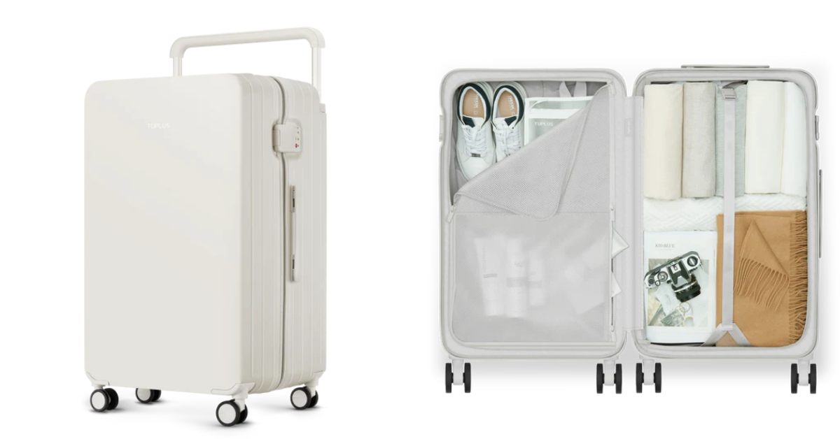 TUPLUS這款簡約「蓮花白色」行李箱充滿質感,標誌性的寬手柄方便使用和減輕重量,配有TSA認證的密碼鎖可保護拉鍊,可360度旋轉的輪子在趕地鐵時也能俐落攜帶,輕巧又方便的設計怎能不愛~