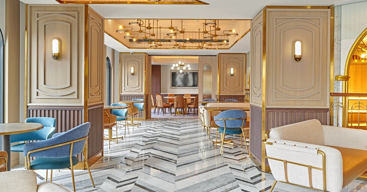 讓人第一眼就驚豔的原因,來自於國際知名設計團隊 HBA Studio 的加入。他們沒有用強烈的現代語言掩蓋舊建築,而是透過光影、材質、線條與層次,讓歲月的痕跡變成視覺的一部分。走在 OKU HOTEL 裡的感受,就像在光線拼貼出的時光廊道裡漫步;某些角落仍可感受到百貨時代的建築語彙,而新的設計又替這些元素注入當代氣息。HBA 以旅人視角重新定義「入住」,把飯店打造成一處可以探索、可以感受、甚至可以收藏故事的場域,讓每位來訪者都能在對話中看見城市的另一面。
