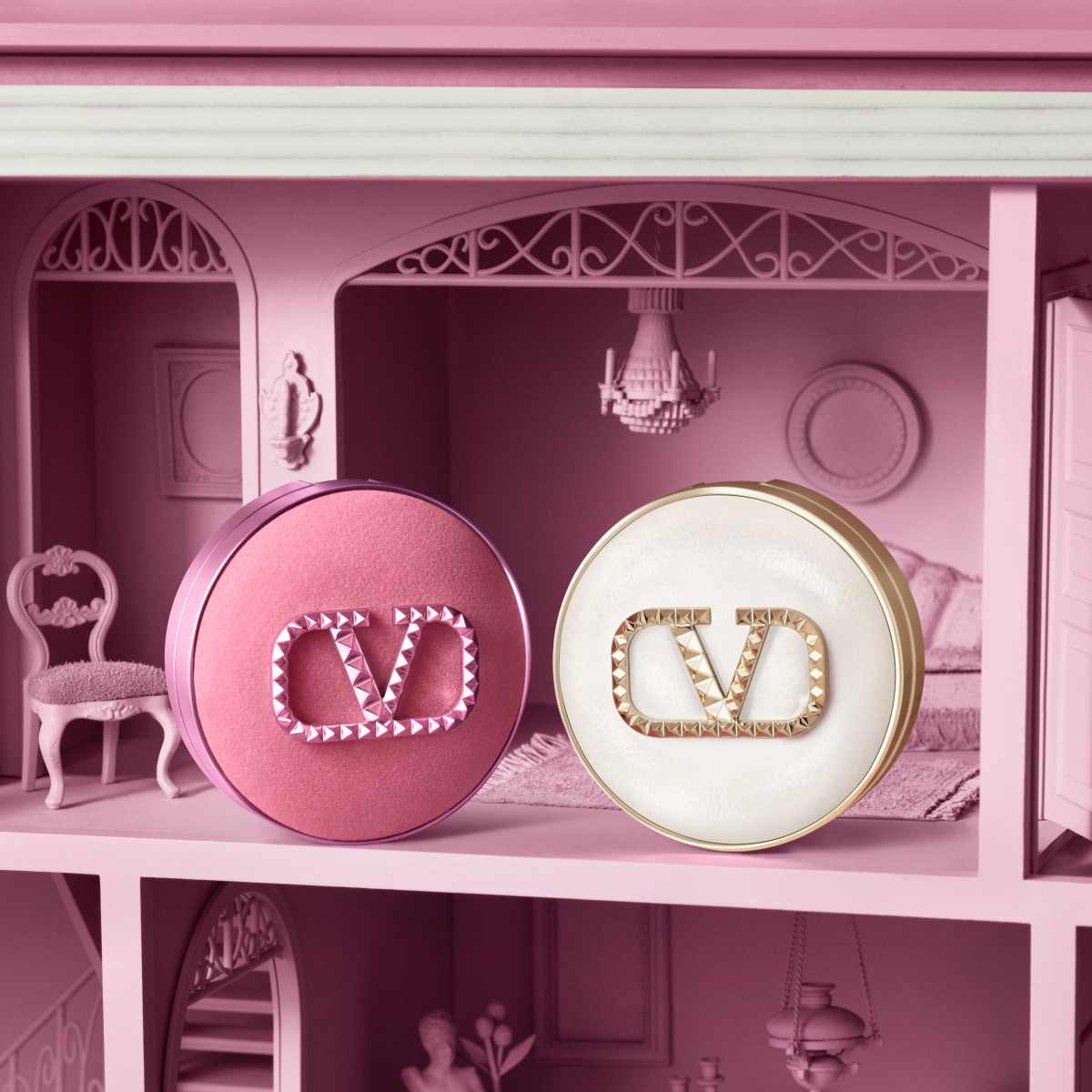 只要試過都會愛上的高級妝感!VALENTINO BEAUTY最受歡迎的底妝「高訂光感氣墊粉餅 」,注入頂級保濕成分,能夠讓妝感更服貼細緻,維持不暗沉的持久水亮感。過去曾推出多款限量時尚外殼,目前仍有販售的是白色皮革飾以金色鉚釘VLOGO,還有今年才剛限定上市的夢境粉,粉紫色調的蜜桃絨布外殼,就像一顆水蜜桃,實品真的超美超夢幻,絕對要入手收藏。