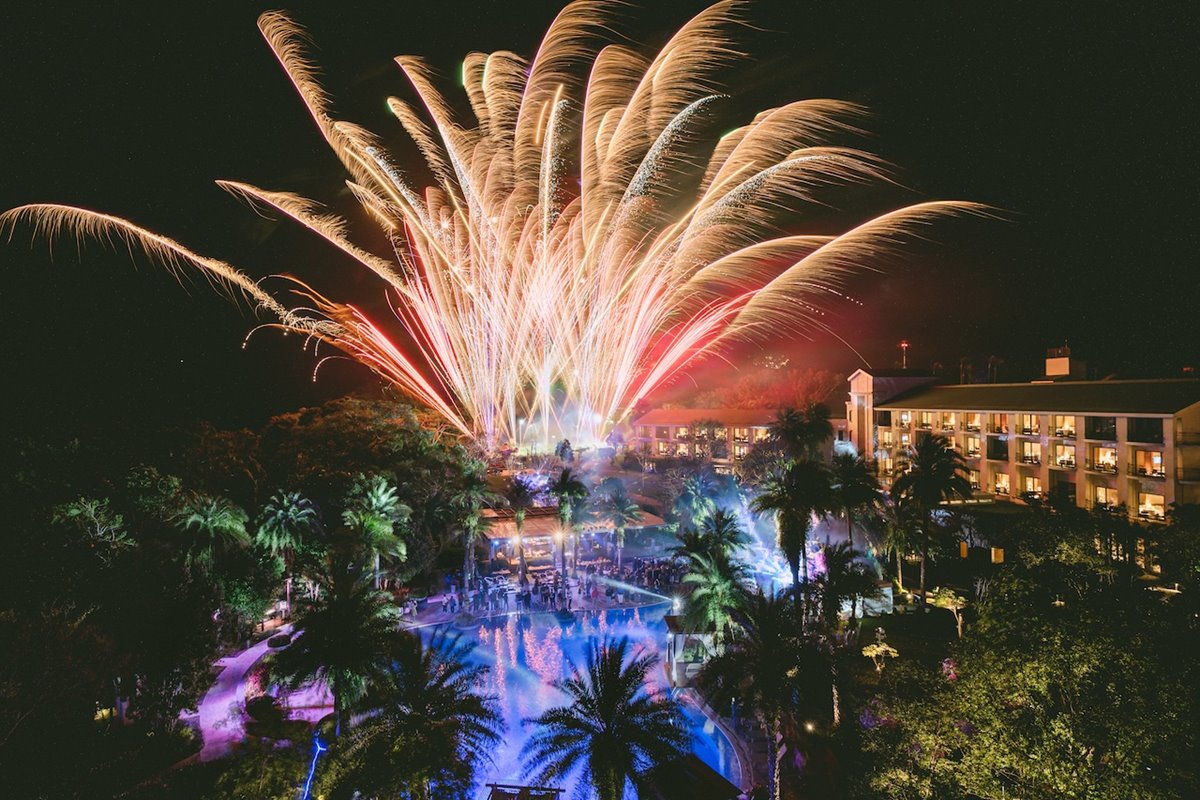 大溪笠復威斯汀絕美池畔煙火景色就在「秘境婚禮體驗日」3 月 15 日限時開放免費參與。圖/ 大溪笠復威斯汀提供