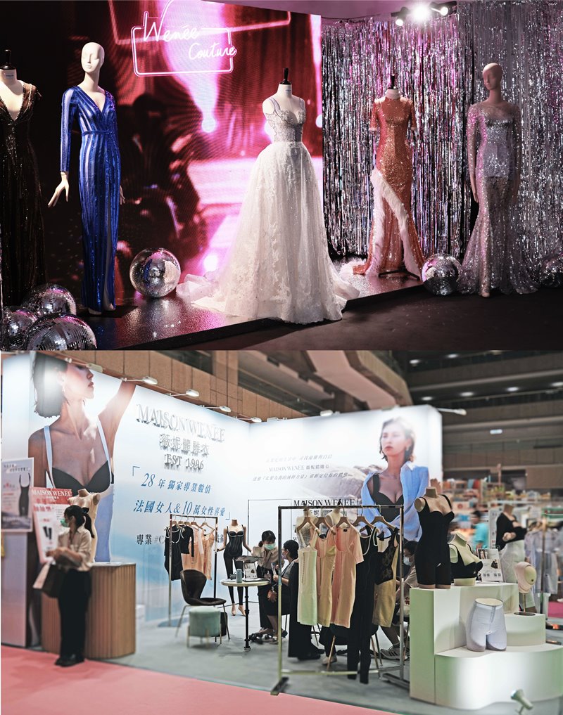 MAISON WENĒE 薇妮體衣Dreams Reborn: A Decade of MAISON WENĒE Couture Reverie「夢·新生」 “1970S NEW YORK”(上)以及MAISON WENĒE七月更於台北婦幼展發表最新「辣媽專屬 產後修復體雕衣」獲得現場產後媽咪們的搶購與喜愛。(下)
