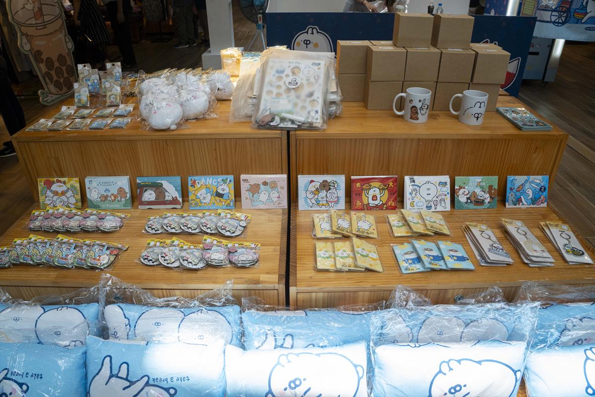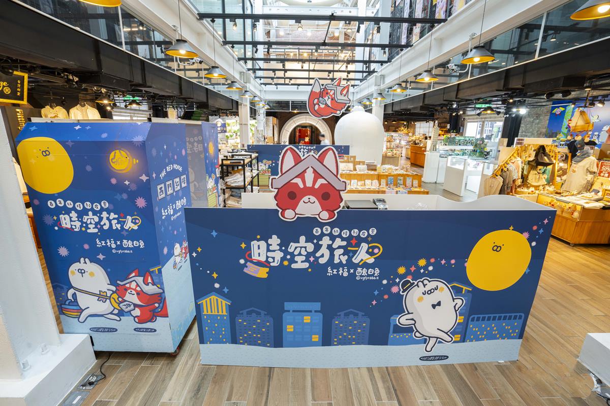 還有「時空旅人快閃店」(展覽期間:2024/7/16~2024/9/1),策展內容包含了醜白兔全新一季紀念商品,加上紅福全新紀念品。依循創作主題「時空旅人」打造一系列「快速收納、輕鬆掛物、療癒娛樂」的旅遊好物。包含有魔術旅行掛勾、時空雙用袋、魔法極輕袋、大場景壓克力組、聰明手沖杯等,更有世界限量首發的紅福絨毛娃娃,值得收藏。