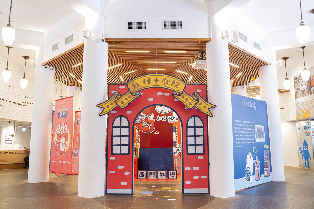 這個特展主要分成三大展區,分別是「西門紅樓百年風華」(展覽期間:2024/7/16~2024/8/11),此展區主題是醜白兔與紅福2024年最新系列創作,結合「全台第一個AI XR古蹟導覽員」紅福的導覽,重新詮釋西門紅樓的百年風華。展區中,由醜白兔與紅福帶你穿梭西門紅樓百年間轉型的各階段,用創作者的視角來觀賞歷史蛻變,一起走過1908年市場階段、1945的劇場階段、1968的電影階段,記得要打開「AI XR說書人導覽」服務,你會發現多款紅福貼圖,正等著與你互動。