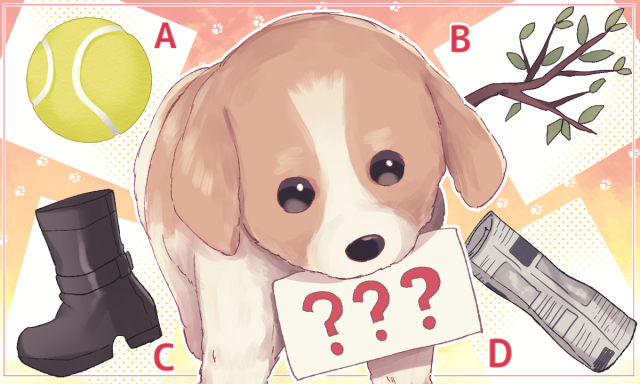 Q:一隻可愛的狗狗向你跑來,牠嘴裡會咬著什麼呢?(請以直覺選出)