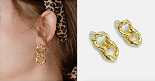 擁有優秀才華、設計熱忱的河英恩,卻被埋沒成大公司的一環齒輪,不只要對抗時尚圈大環境的不友善,公司內部也是敵人滿滿,這組「雙環金色耳環」加持,讓宋慧喬在會議上霸氣反擊!(跟駝色外套超搭)