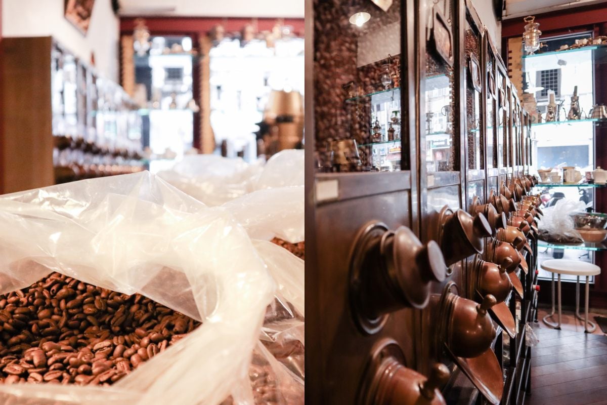 特別從德國進口的咖啡豆槽,一排擺在入口相當壯觀。